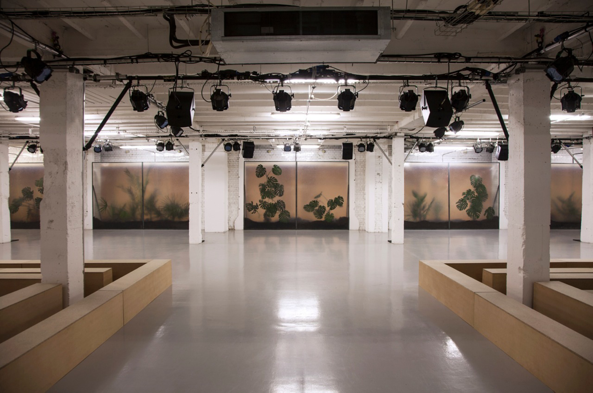 Fashion designer Barbara Casasola presented her Spring and Summer 2015 collection at the Victoria House in London. To reference the modernist tradition of her native Brazil, Kite & Laslett in charge of the set, build a green house inspired decor. Five steel and fibreglass windows framed a landscape of tropical plants. A soft lighting allowed the leaves to appear through translucence emphasizing simplicity, purity and freshness.